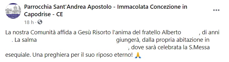 Questo parte di quanto pubblicato sulla pagina facebook "Parrocchia Sant'Andrea Apostolo - Immacolata Concezione in Capodrise - CE":