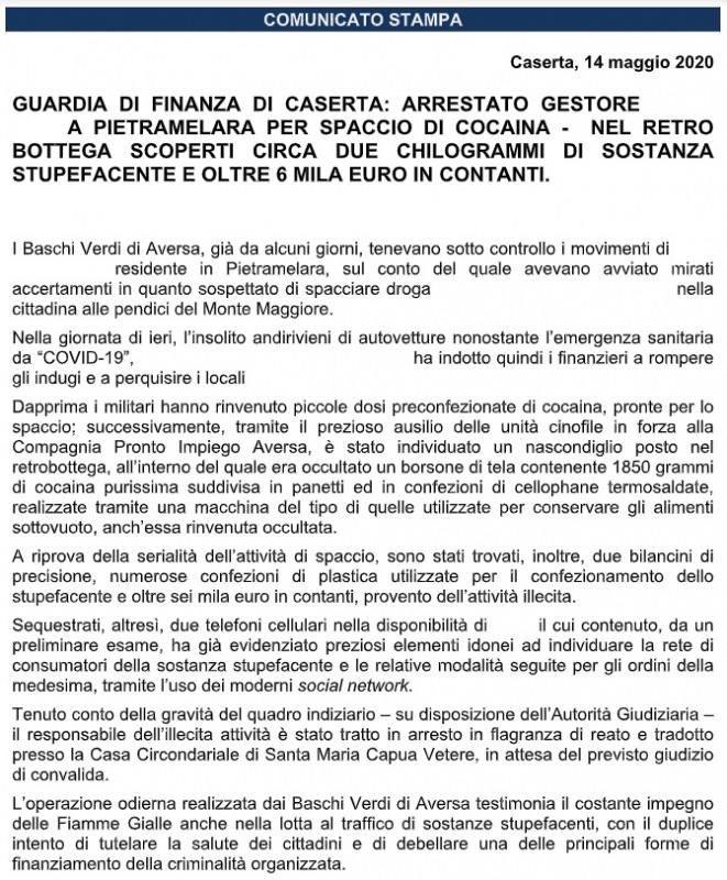 Pubblichiamo nota stampa del Comando Provinciale Guardia di Finanza Caserta
