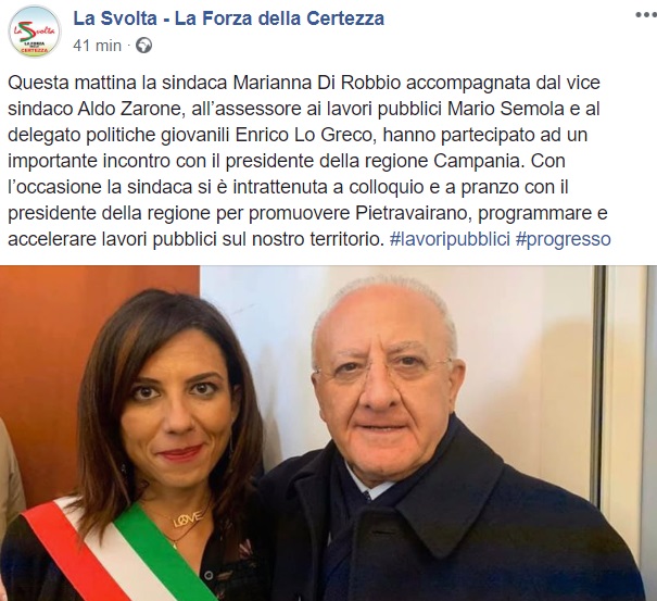 Questo quanto pubblicato dalla pagina Facebook "La Svolta - La Forza della Certezza":