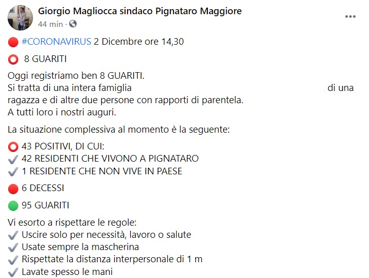 Questo parte di quanto apprendiamo dalla pagina facebook del Sindaco Magliocca: