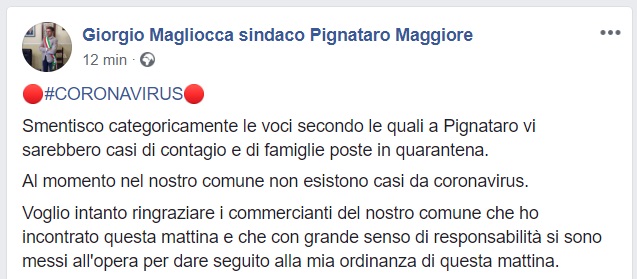 Questo quanto apprendiamo dalla pagina FB del Sindaco Giorgio Magliocca