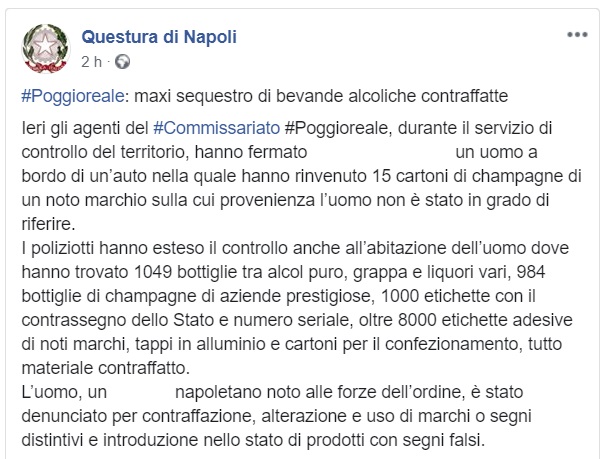 Questo quanto apprendiamo dalla pagina FB Questura di Napoli