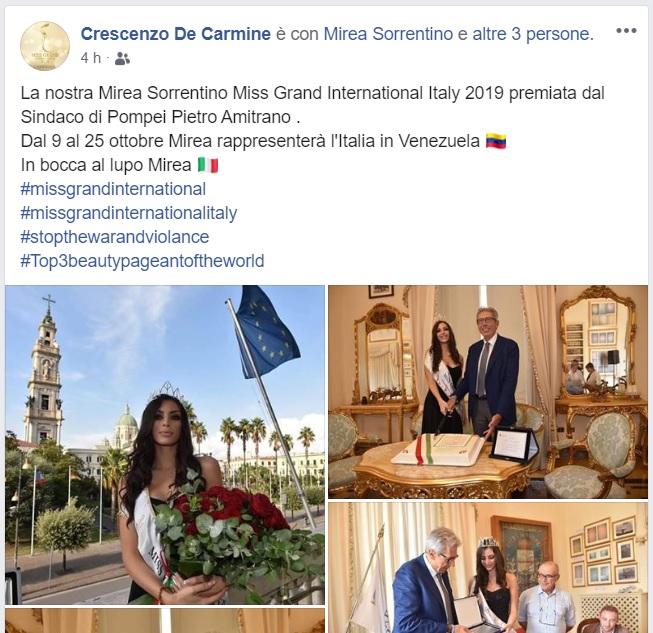 Questo quanto pubblicato dal referente della Campania del concorso Miss Grand International
