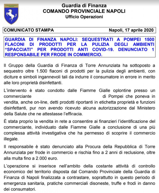 Pubblichiamo nota stampa della Guardia di Finanza Comando Provinciale Napoli