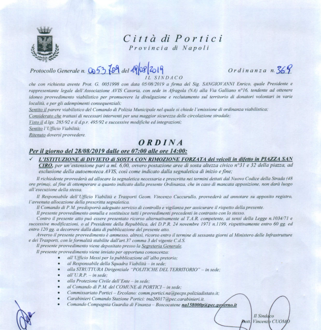 Lo apprendiamo dall'albo pretorio del Comune di Portici.