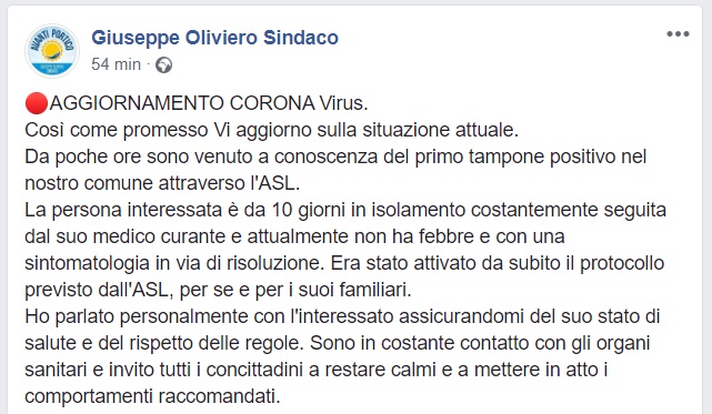 Questo quanto pubblicato dal Sindaco di Portico di Caserta