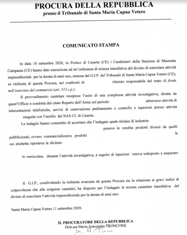 Pubblichiamo nota stampa della Procura di SMCV