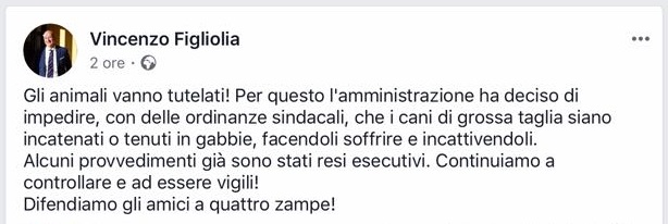 Questo quanto scritto dal Sindaco Vincenzo Figliolia