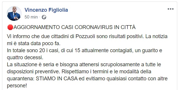 Pozzuoli. Coronavirus. "Due cittadini positivi. La situazione è seria"