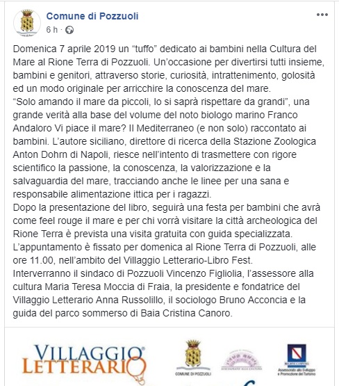 Una domenica dedicata ai bambini e al loro rapporto con il mare. E' questo lo scopo della Festa del Mare organizzato al Villaggio letterario domenica alle ore 11.