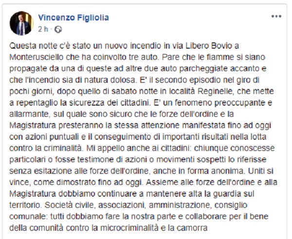 Questo il post pubblicato sulla pagina fb ufficiale del Sindaco di Pozzuoli Vincenzo Figliolia.