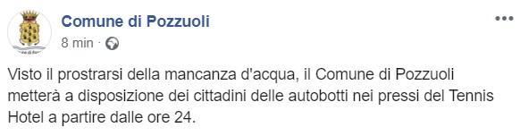 Questo quanto pubblicato sulla pagina Facebook del Comune di Pozzuoli: