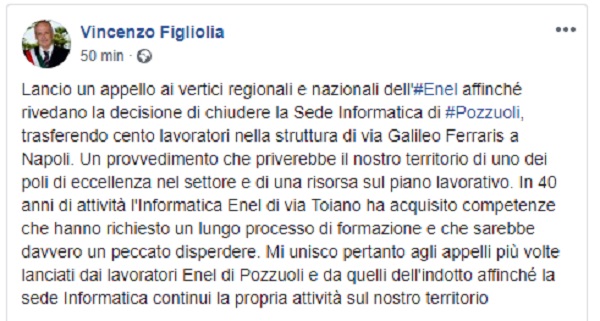 Questo il post pubblicato sulla pagina fb del Sindaco di Pozzuoli Vincenzo Figliolia.