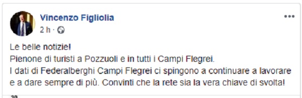 Questo il post pubblicato sulla pagina fb ufficiale del Sindaco di Pozzuoli Vincenzo Figliolia.