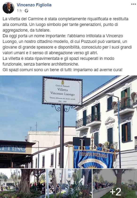 Questo quanto pubblicato su Facebook dal Sindaco di Pozzuoli, Vincenzo Figliolia: