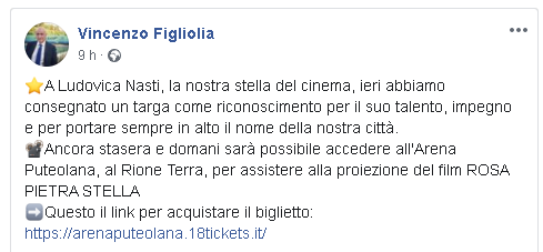 Lo apprendiamo dalla pagina Facebook del Sindaco di Pozzuoli, Vincenzo Figliolia.