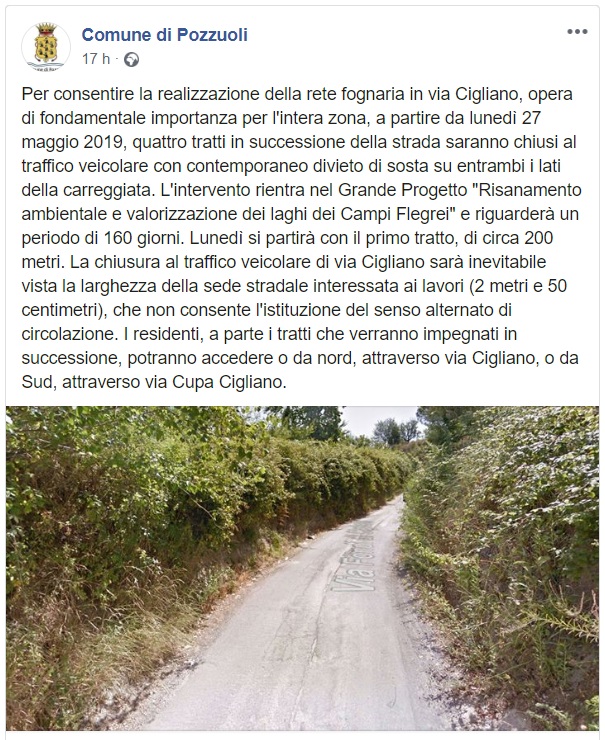 Questo quanto comunicato sulla pagina Fb del comune di Pozzuoli
