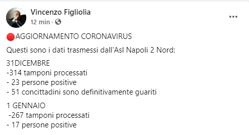 Lo apprendiamo dalla pagina Facebook del Sindaco di Pozzuoli Vincenzo Figliolia
