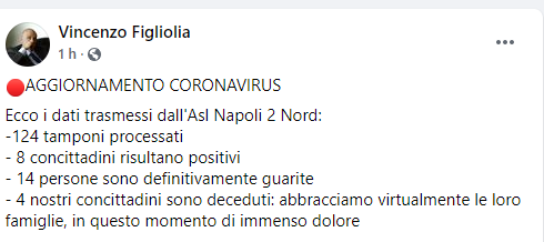 Lo apprendiamo dalla pagina Facebook del Sindaco di Pozzuoli Vincenzo Figliolia
