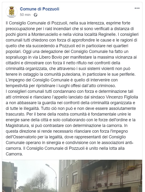 Questo quanto espresso sulla pagina Fb del Comune di Pozzuoli