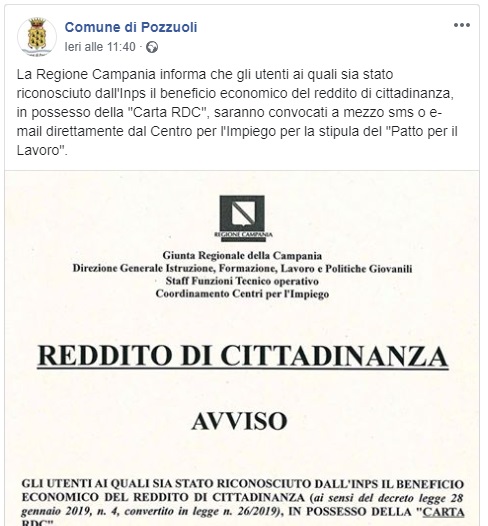 Questo quanto apprendiamo dalla pagina Facebook del Comune di Pozzuoli