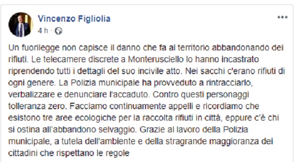 Questo il post pubblicato sulla pagina fb ufficiale del Sindaco di Pozzuoli Vincenzo Figliolia.