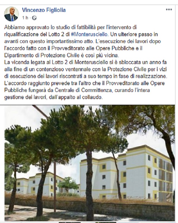 Questo il post pubblicato sulla bacheca fb ufficiale del Sindaco di Pozzuoli Vincenzo Figliolia.