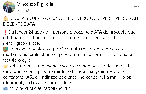 POZZUOLI: "SCUOLA SICURA, PARTONO I TEST SIEROLOGICI PER IL PERSONALE DOCENTE E ATA"