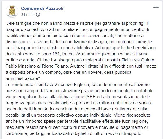 Questo quanto pubblicato dalla pagina FB del Comune di Pozzuoli