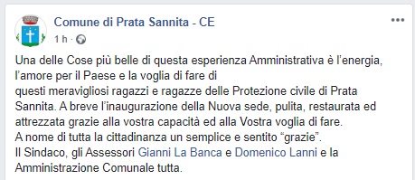 Questo quanto pubblicato dal Comune di Prata Sannita