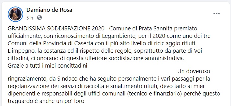 Questo quanto pubblicato sulla pagina fb del Sindaco di Prata Sannita