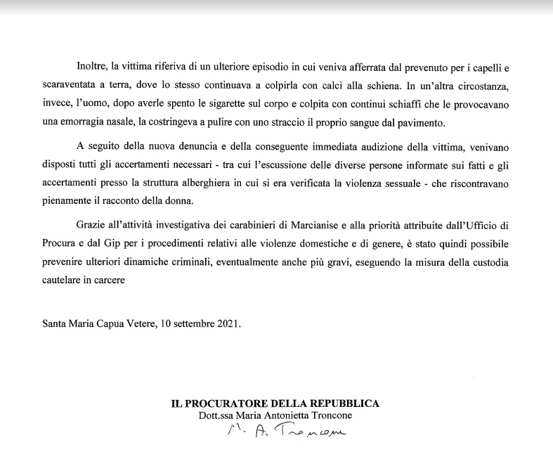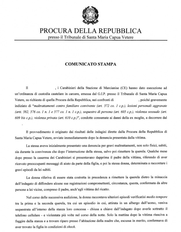 Questa parte della nota stampa della Procura di SMCV:
