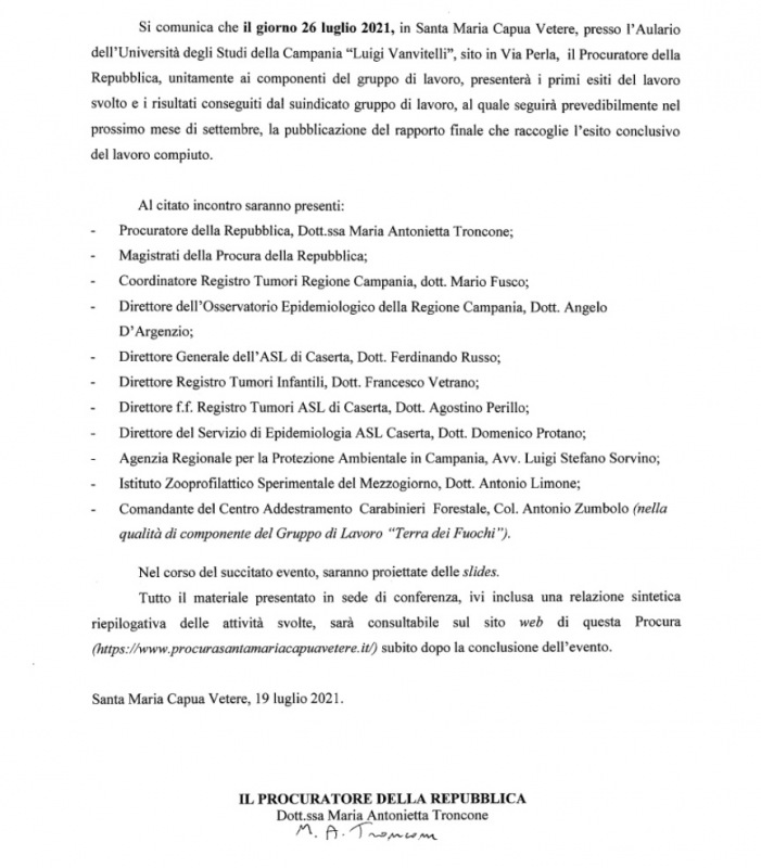 Questa la nota stampa della Procura di SMCV: