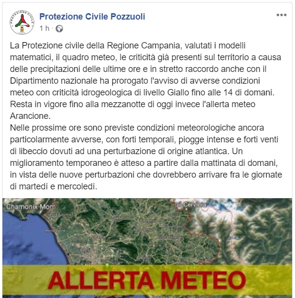 Questo quanto apprendiamo dalla pagina FB della Protezione Civile Pozzuoli