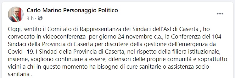 Questo quanto pubblicato sulla pagina facebook del Sindaco Marino