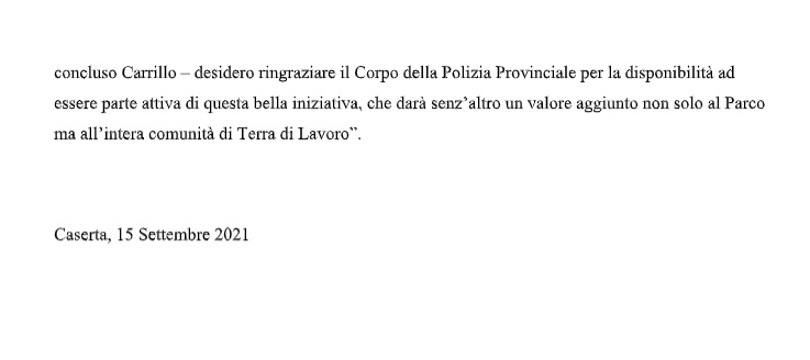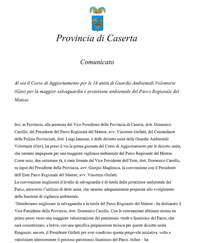 Questa la nota stampa della Provincia di Caserta: