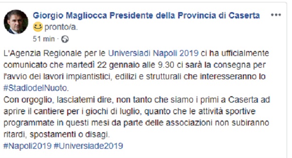Questo il post pubblicato sulla pagina fb ufficiale del Presidente della Provincia Giorgio Magliocca.