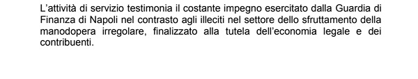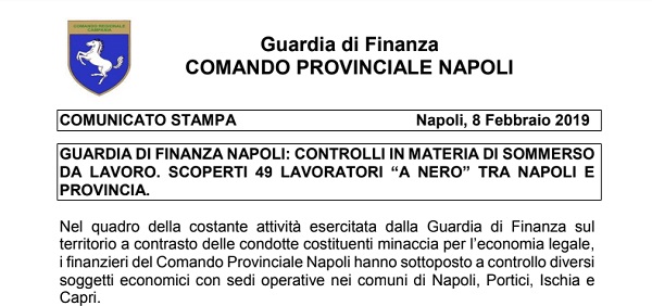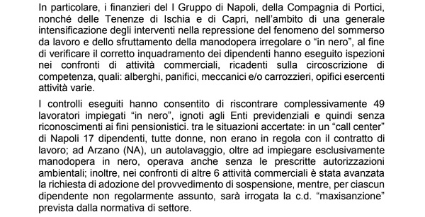 Questo il comunicato inviatoci dal Comando Provinciale della Guardia di Finanza di Napoli. RETTIFICHIAMO: sono 49 e non 48 i lavoratori 'a nero'