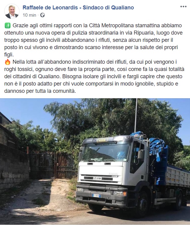 Questo quanto pubblicato sulla pagina facebook dal Sindaco de Leonardis