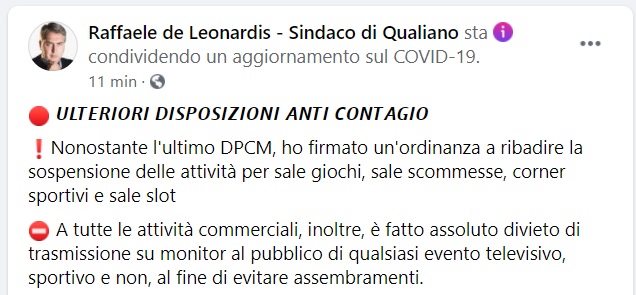 Questo quanto pubblicato sulla pagina fb del Sindaco di Qualiano