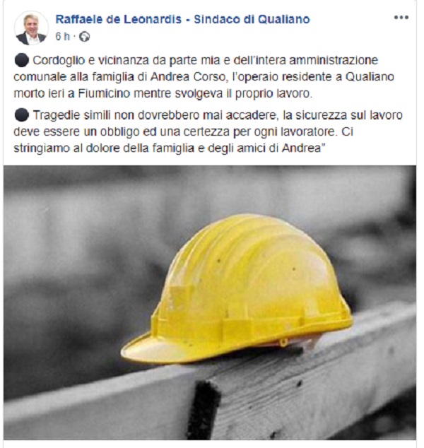 Questo il post pubblicato sulla pagina fb ufficiale del Sindaco di Qualiano Raffaele de Leonardis.