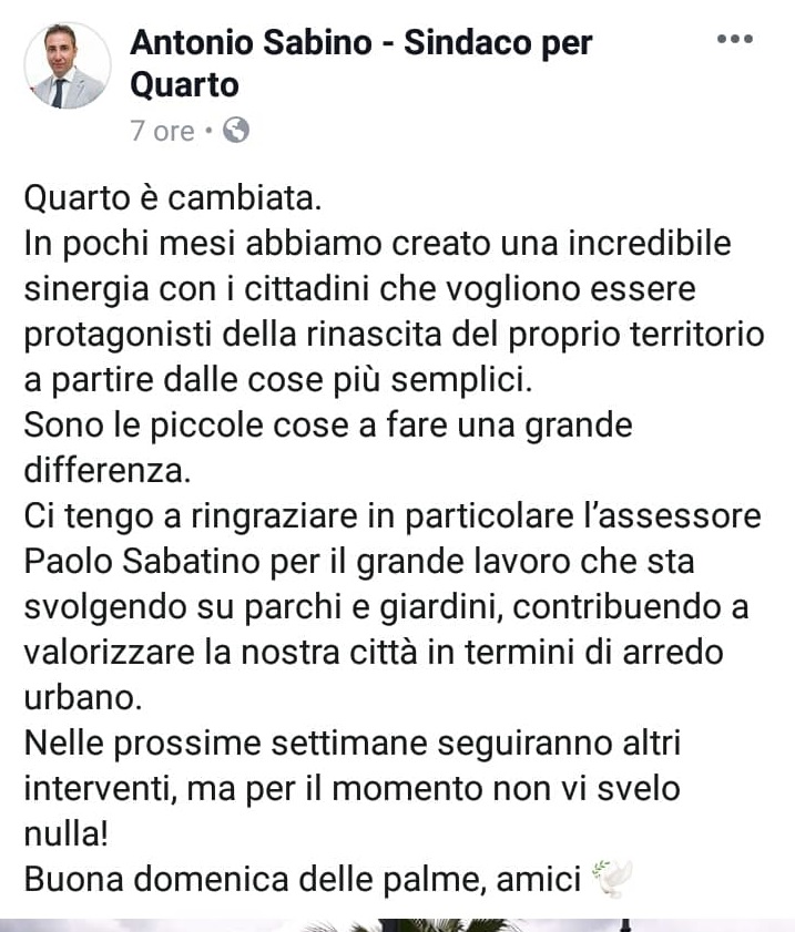 Il Sindaco di Quarto Antonio Sabino ha fatto un bilancio della situazione