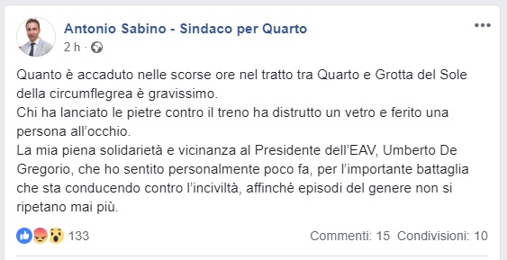 Apprendiamo dalla pagina Facebook del Sindaco di Quarto Antonio Sabino quanto segue