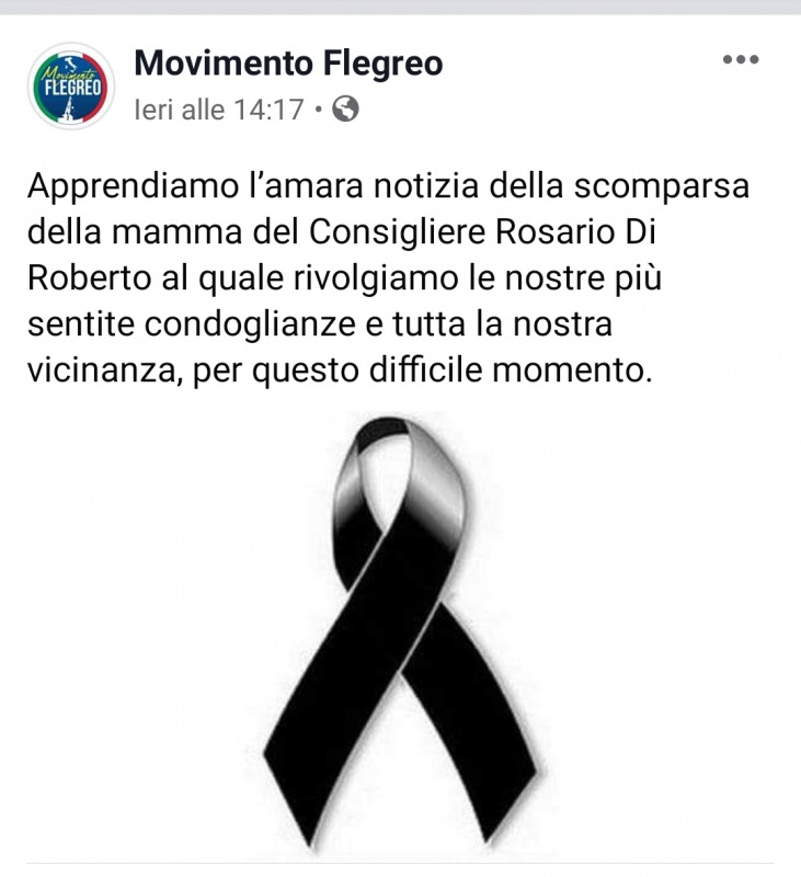 "Apprendiamo l’amara notizia della scomparsa della mamma del Consigliere Rosario Di Roberto al quale rivolgiamo le nostre più sentite condoglianze e tutta la nostra vicinanza, per questo difficile momento."