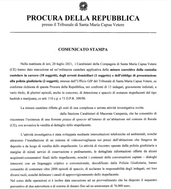 Questa parte della nota stampa della Procura di SMCV: