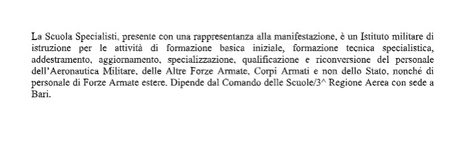 Questa la nota stampa della Scuola Specialisti dell'Aeronautica Militare:
