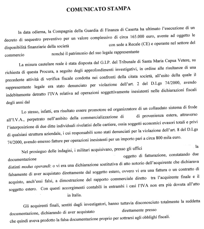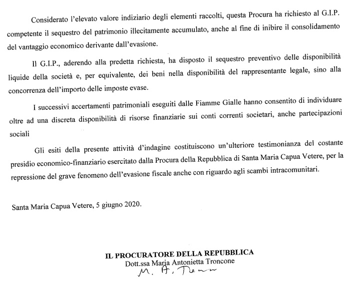 Pubblichiamo nota stampa della Procura di SMCV