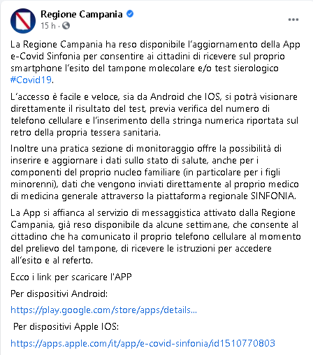 Lo apprendiamo dalla pagina Facebook della Regione Campania.