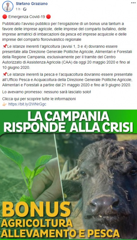 Questo quanto apprendiamo dalla pagina facebook dell'On. Graziano: