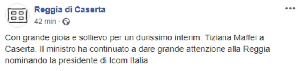 Questo il post pubblicato sulla pagina fb ufficiale della Reggia di Caserta.